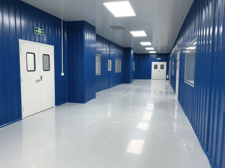 車間采用模塊化潔凈室結(jié)構(gòu),墻體采用50mm厚深藍(lán)抗菌彩鋼板,接縫處采用圓弧處理工藝。自動(dòng)化沖壓線與激光焊接工作站呈U型交替布局,工作站間設(shè)置深灰不銹鋼傳遞窗,確保物料流轉(zhuǎn)潔凈度。吊頂系統(tǒng)配置FFU高效過濾單元,維持≥20次/h換氣次數(shù),氣流組織采用頂送側(cè)回模式。