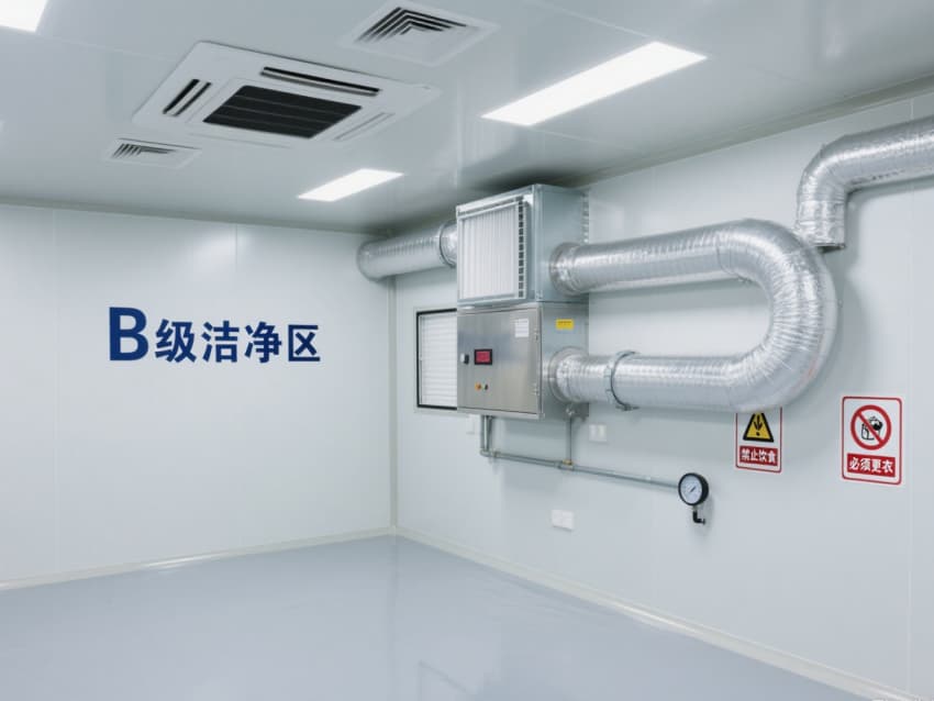 頂部嵌入式高效送風(fēng)口形成垂直層流,配合側(cè)下回風(fēng)系統(tǒng)實(shí)現(xiàn)每小時(shí)15-25次空氣置換,恒溫恒濕系統(tǒng)精準(zhǔn)控制溫度(18-26℃)、濕度(45-65%)。不銹鋼潔凈門窗與傳遞窗采用高氣密性密封結(jié)構(gòu),嵌入式LED潔凈燈提供≥300lux均勻照明,全方位營造安全、精準(zhǔn)的生物制藥生產(chǎn)基礎(chǔ)環(huán)境。