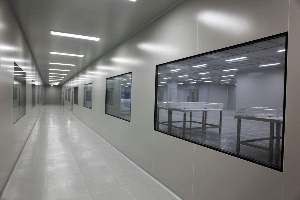 4、潔凈廠房的建設上要注意走廊設計,它使潔凈區和外界有一個緩沖的區域,對于外界的污染也有一個輔助凈化的作用。門窗和內墻面應該平坦,不設置窗臺,結構方式要充分考慮空氣中對水分的密封,防止水粒子污染。為了防止室內溫度差的原因產生露水,室內不同潔凈度的房間之間要密封好,門窗選材要不易變形、氣密性好、不積塵,便于打掃。一般潔凈工程不會采用木質品,大都是金屬材料防止受潮發霉、變形。墻面和窗戶都不留窗臺和門檻,以雙層窗為主。