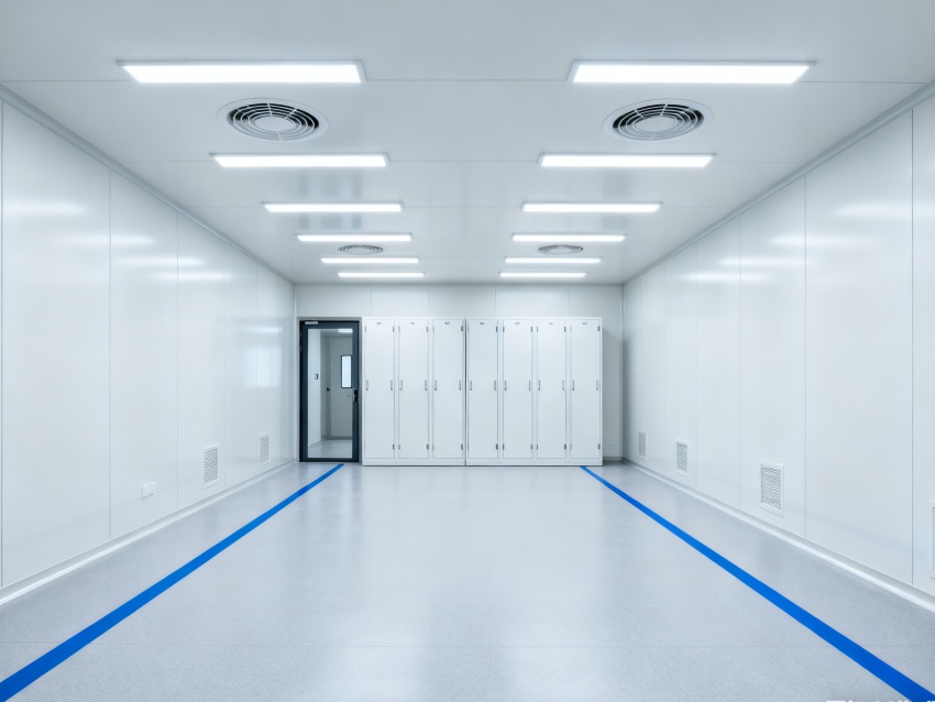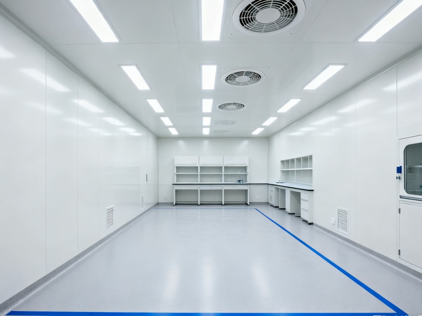 實驗室潔凈度嚴格遵循萬級標準(ISO8級),每立方米空氣中≥0.5μm微粒數(shù)≤352000個,采用初效-中效-高效三級空氣過濾系統(tǒng),配合垂直層流送風設(shè)計,實現(xiàn)每小時20-25次空氣置換。室內(nèi)墻面采用耐腐蝕潔凈彩鋼板,地面為PVC無菌卷材,所有接縫做密封處理;溫度控制在22±2℃、相對濕度50±5%RH,部分區(qū)域維持5-8Pa負壓,有效防止交叉污染,符合生物安全實驗室建設(shè)規(guī)范。