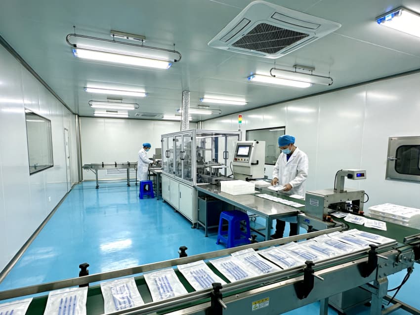 白色墻面采用食品級潔凈抗菌涂層,推行無縫拼接與高精度找直工藝,陰陽角采用R50圓弧倒角設計,徹底消除清潔死角,潔凈度穩定達到Class 7級標準。廠房科學劃分無菌裝配區、滅菌區、檢測區等核心區域,各區域配備獨立層流凈化與負壓防護系統,裝配區預留恒溫恒濕調控接口,滅菌區設置專用物料傳遞通道,全方位保障生產全流程的無菌性與合規性,為高品質無菌醫療器械生產筑牢環境基礎。