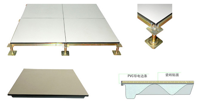 全鋼陶瓷防靜電地板系統(tǒng)有地板、橫梁、支座組成。橫梁和自身高度可調(diào)的支座用螺釘連結(jié)成穩(wěn)固的下部支承系統(tǒng),地板鑲嵌入橫梁圍成的方格內(nèi)。