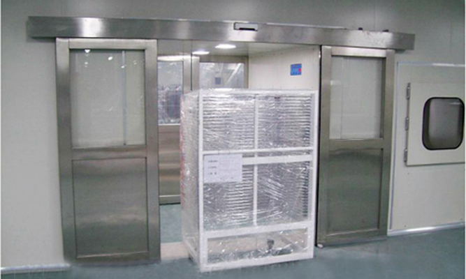 貨淋室是物料進(jìn)入潔凈室所必需的通道,它可以減少物料進(jìn)出潔凈室所帶來的污染問題。當(dāng)物料進(jìn)入貨淋室后,高速潔凈氣流經(jīng)高效過濾器過濾后由可旋轉(zhuǎn)噴嘴從各個方向噴射至物料身上,有效而迅速清物料所攜帶的塵埃粒子。
